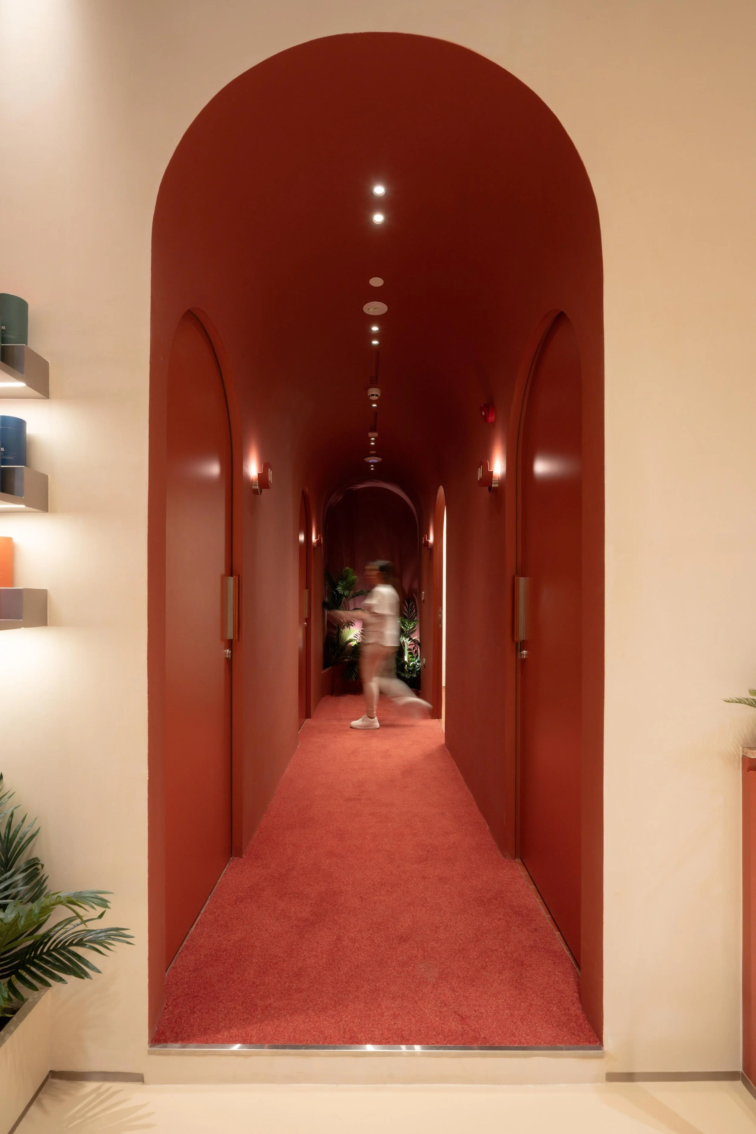 Elements such as the emerald green tunnel, sculpted ceilings, and terracotta-toned gradients add moments of drama while maintaining a sense of wellness-driven tranquillity. Despite technical challenges, including a double-level configuration, H2R maintained an atmosphere of openness, luminosity, and comfort through thoughtful zoning and light management.